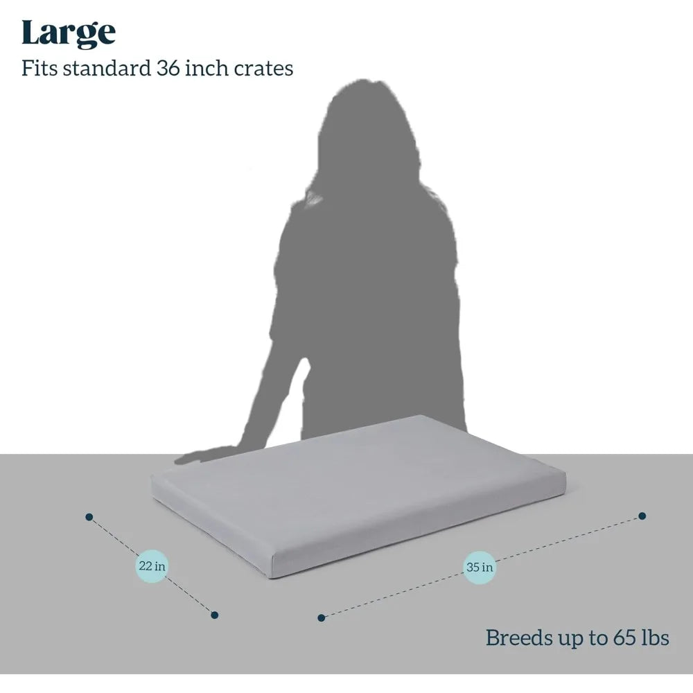 - Easy to clean and maintain: removable, machine-washable cover, quick-dry, and a waterproof liner; measures 35L x 22W x 3 in high, fits 36" crates and supports dogs 41–70 pounds, designed to minimize odor build-up between washes.