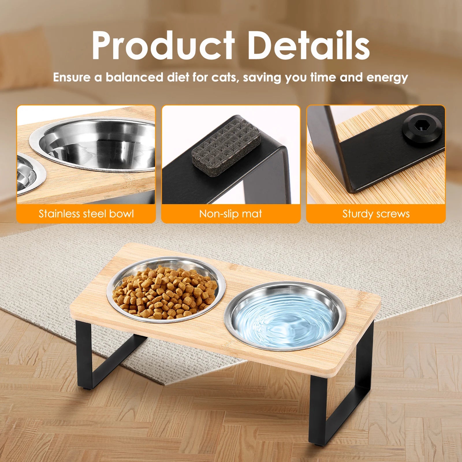Elevate your cat’s dining with a sturdy bamboo wood bowl stand that tilts for a neck-friendly meal and a tidier feeding space.