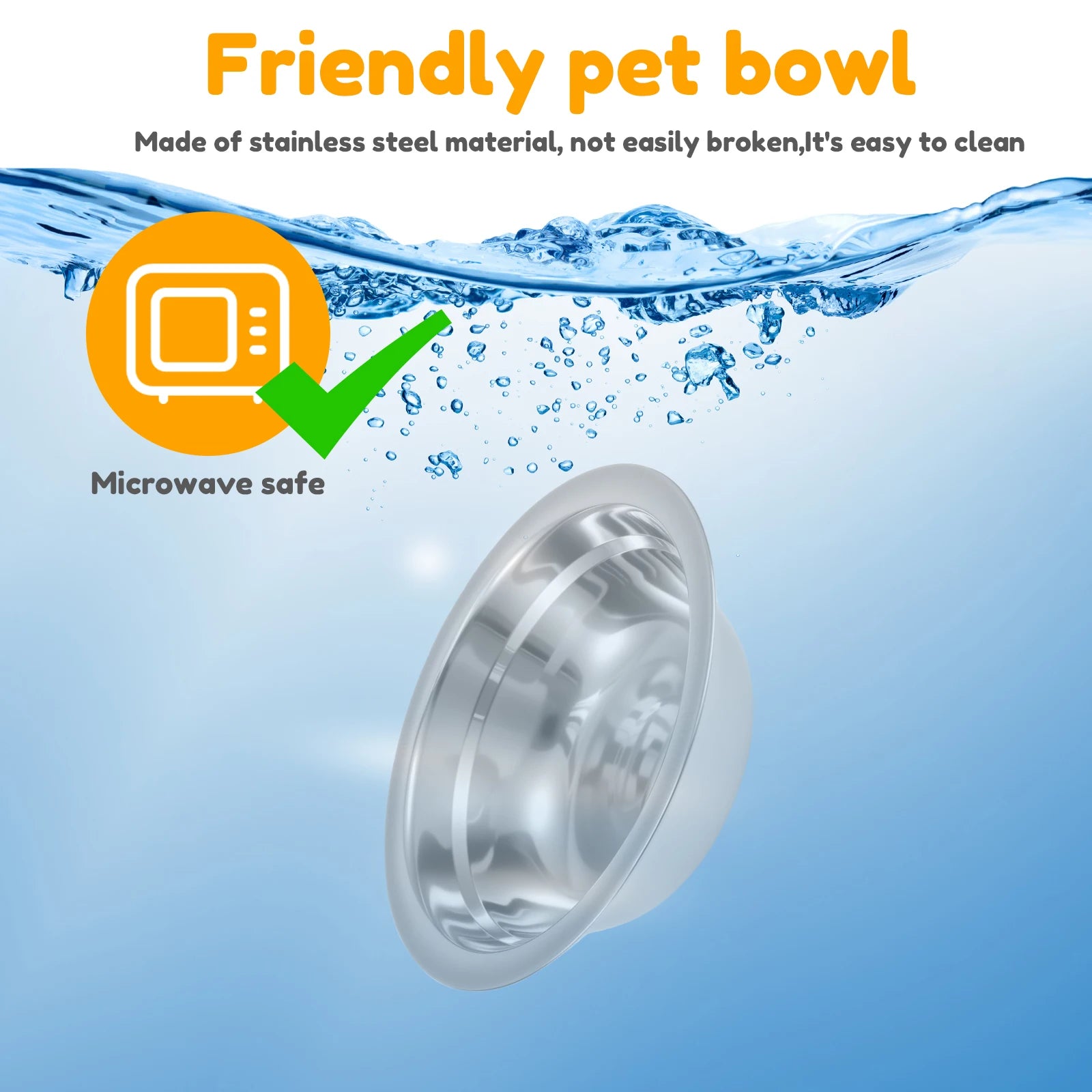 - Two or three stainless steel bowls are included (depending on version) to serve food and water separately and simplify cleanup.