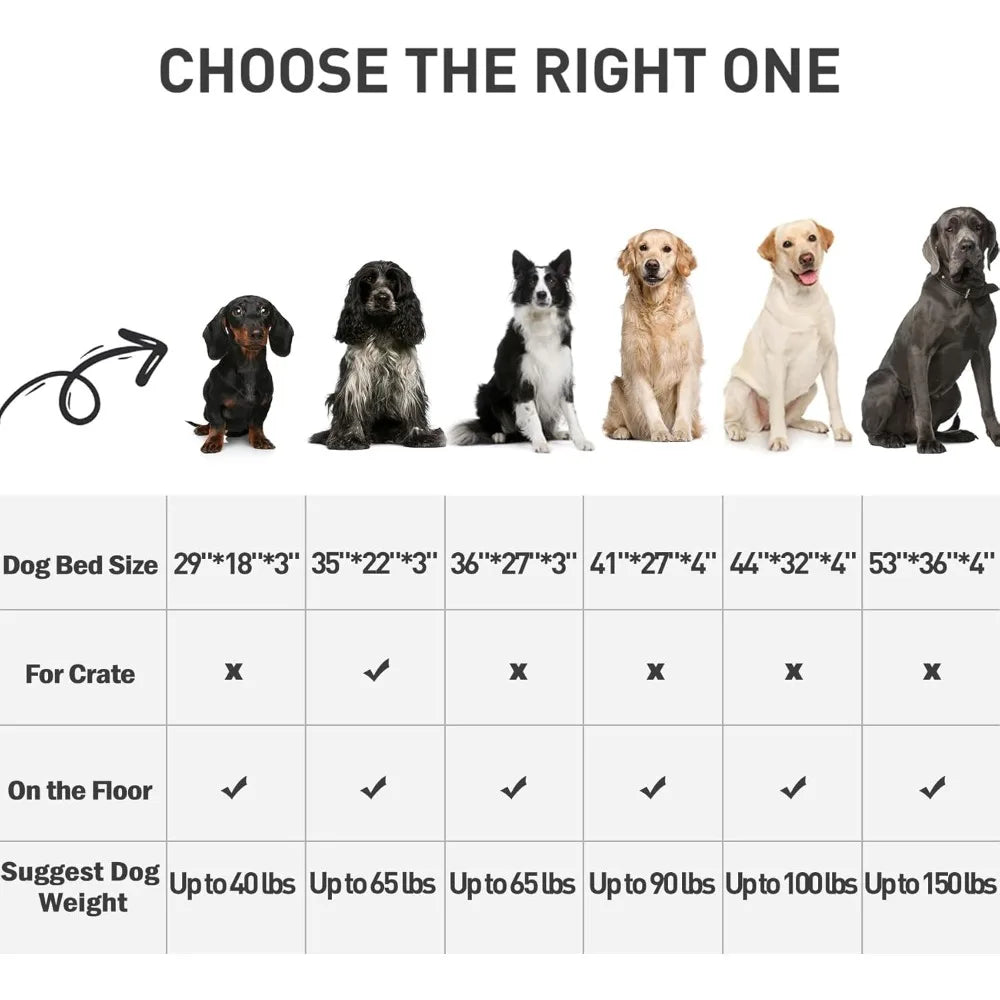 - 35"L x 22"W x 3"H — orthopedic support from a 4" mattress-like 28D foam that evenly distributes your dog's weight for joint relief in medium breeds, puppies, and seniors.