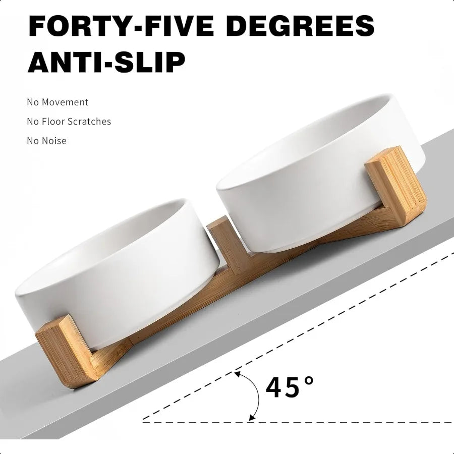 Hign Concerned Ceramic Dog Cat Bowl Set With Wooden Stand